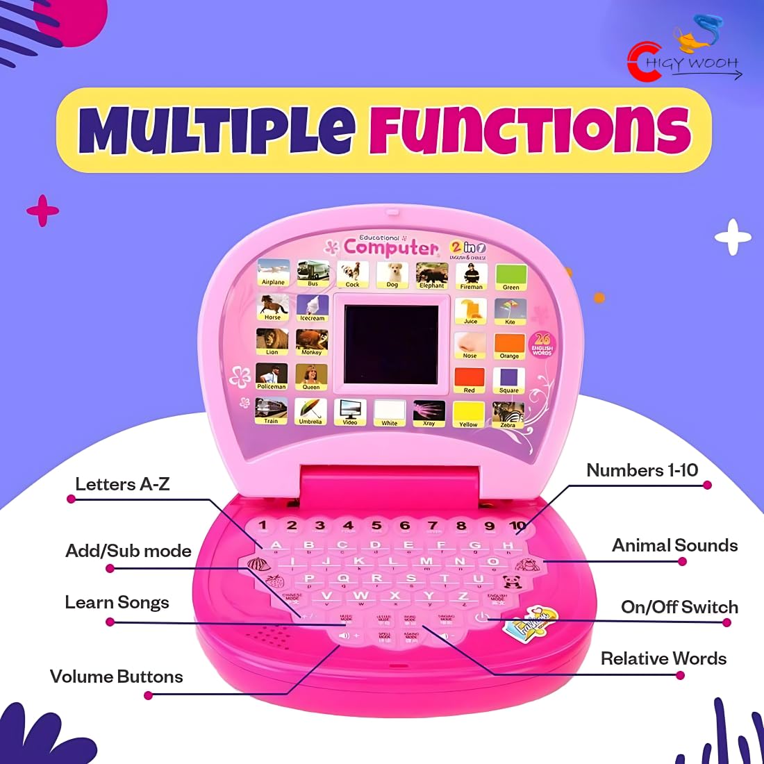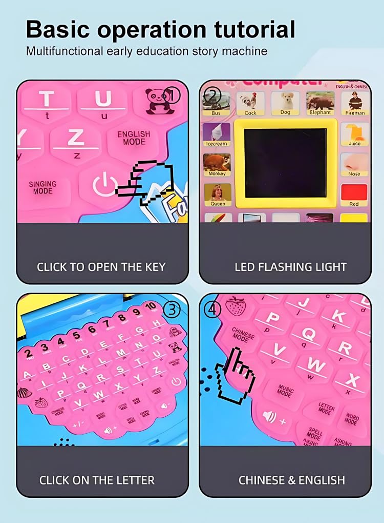 The learning laptop is an educational toy which helps children learn the pronunciation of letters, numbers and...