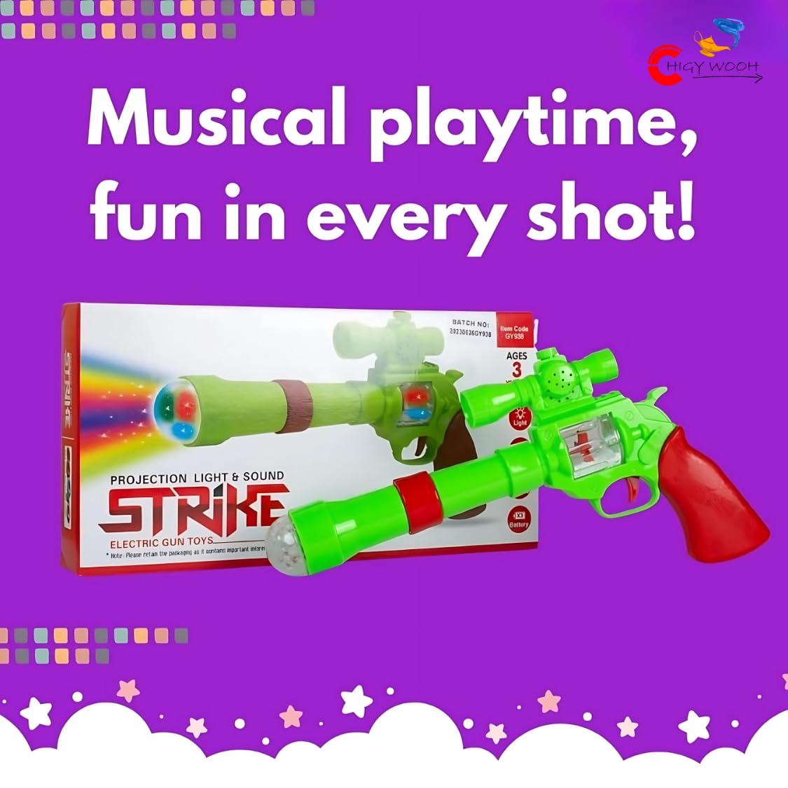 Chigy Wooh brings for you The Amazing Musical Projection Strike Toy Gun for kids with colorful projector...
