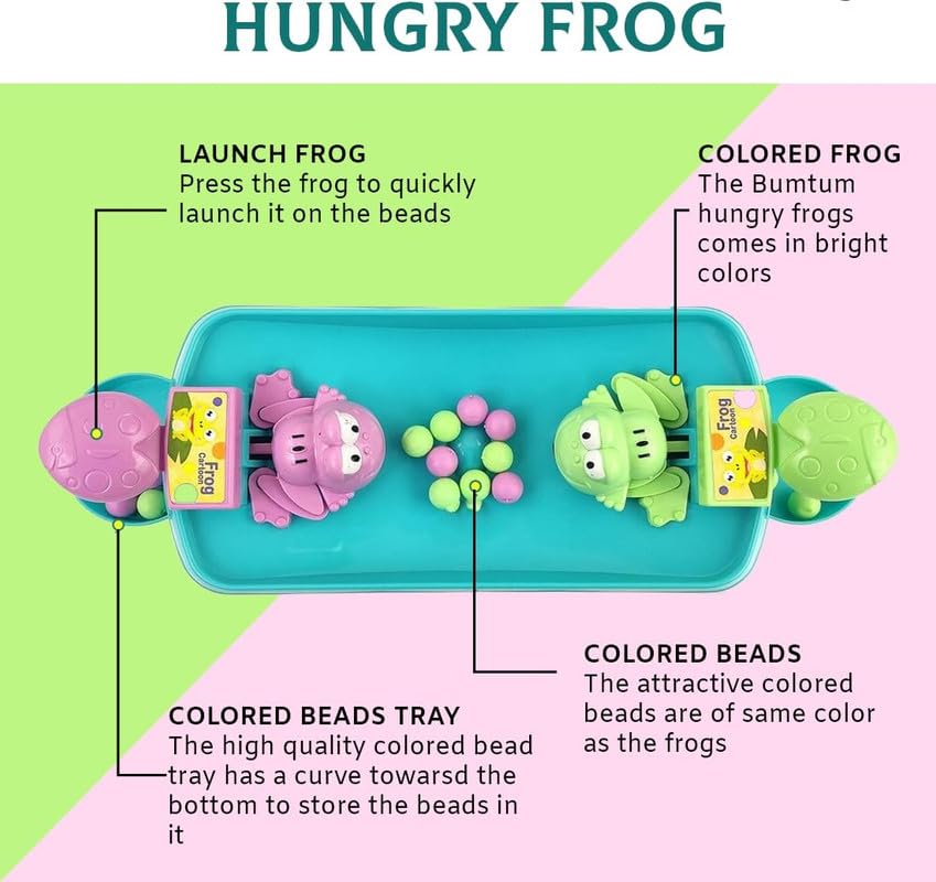 FUN FOR THE WHOLE FAMILY - The best board games are ones that get the whole family involved, this is a new wrinkle on a classic kids' game that everyone remembers; take your game night to the next level MULTIPLAYER ACTION - Fun board games with four or more players are ideal for capturing kids' imagination, attention, and enthusiasm; bash the button to make your frog jump and eat the most peas the fastest; easy game to learn and play FAST AND FURIOUS FUN - Several game modes available, including chomp the most marbles, be first to chomp a specific color marble, or assign different point values to different color marbles; create new ways to challenge family and friends High-Quality Material - This preschool play toy is made of premium and ABS material, odorless and durable. With smooth edges that won't hurt your hands, it is lightweight and easy for you to store and carry when your child is traveling. With this classic toy, it will bring hours of fun to children and adults of all ages. Timeless Classic Game ? Best Gift - This classic tabletop game toy is great gaming entertainment for boys, girls and adults of any age, a game that keeps families and partners entertained! Perfect gift for family friends and children for birthdays, Christmas and other holidays!