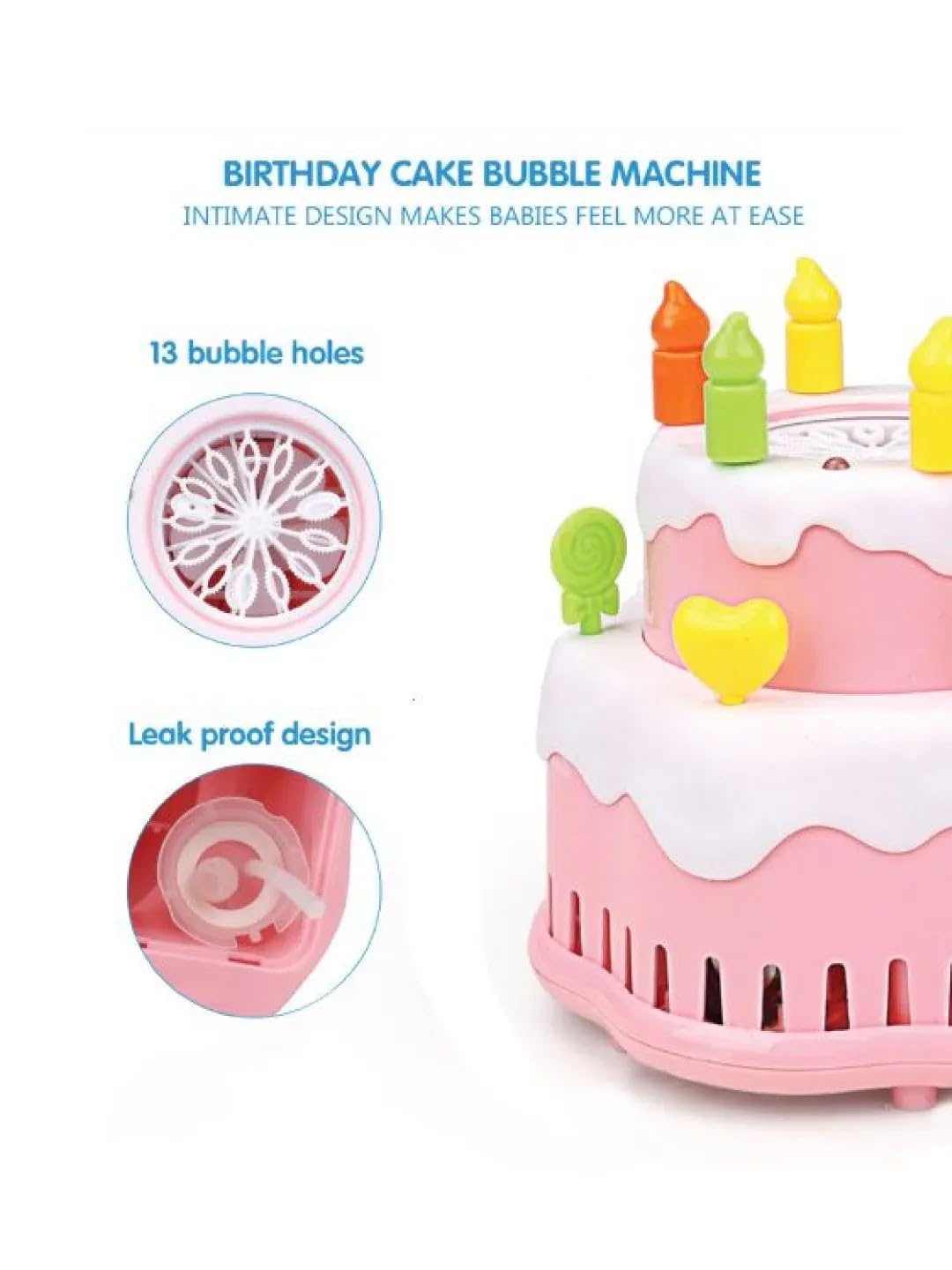Charming birthday cake-shaped bubble machine with decorative elements including candle models and creative stickers With just one...