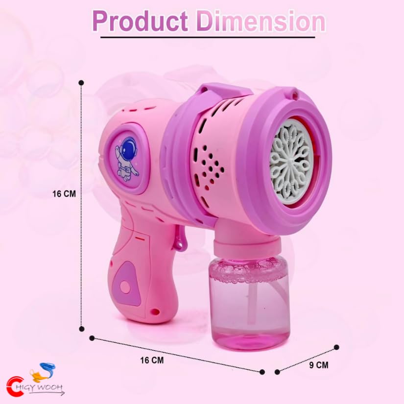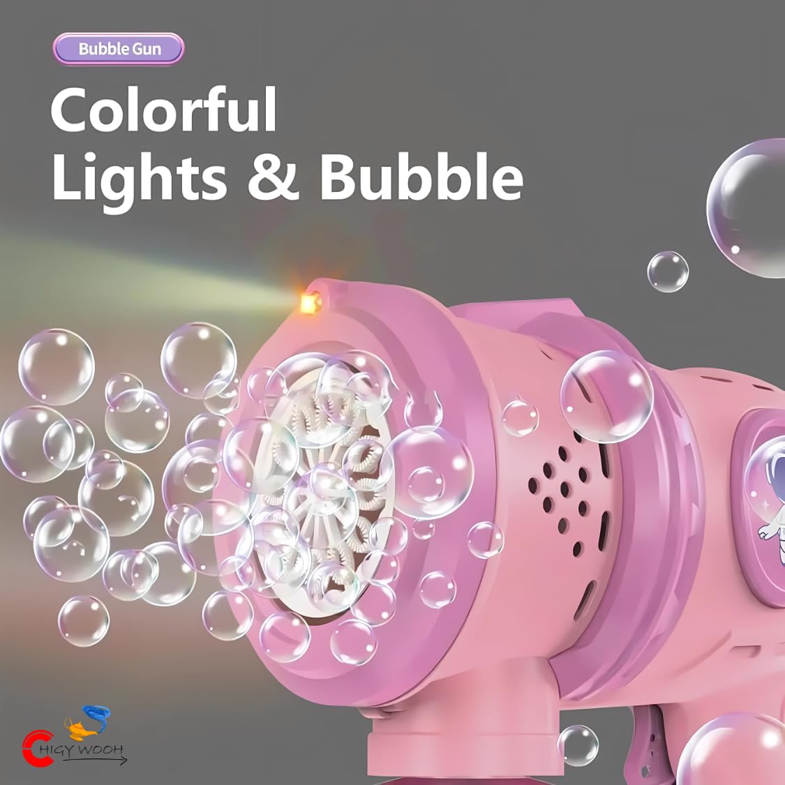 Chigy Wooh Bubble Gun for Kids Leak-Proof Bubble Machine Automatic Space Bubble Blower with Bubble Soap Solution, Led Light Bubble Maker for Boys & Girls