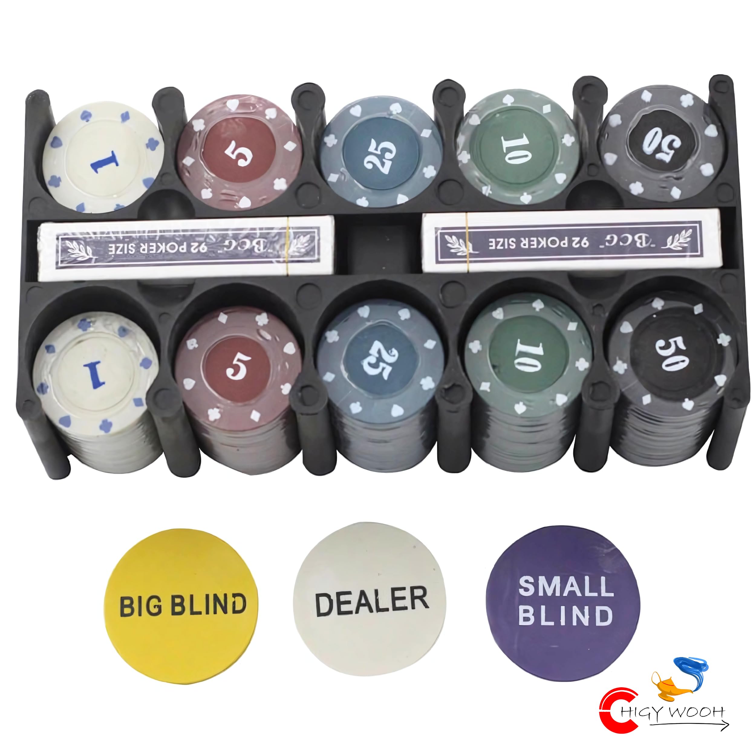 Casino Style Poker Chips Set with Dealer Button Card Game