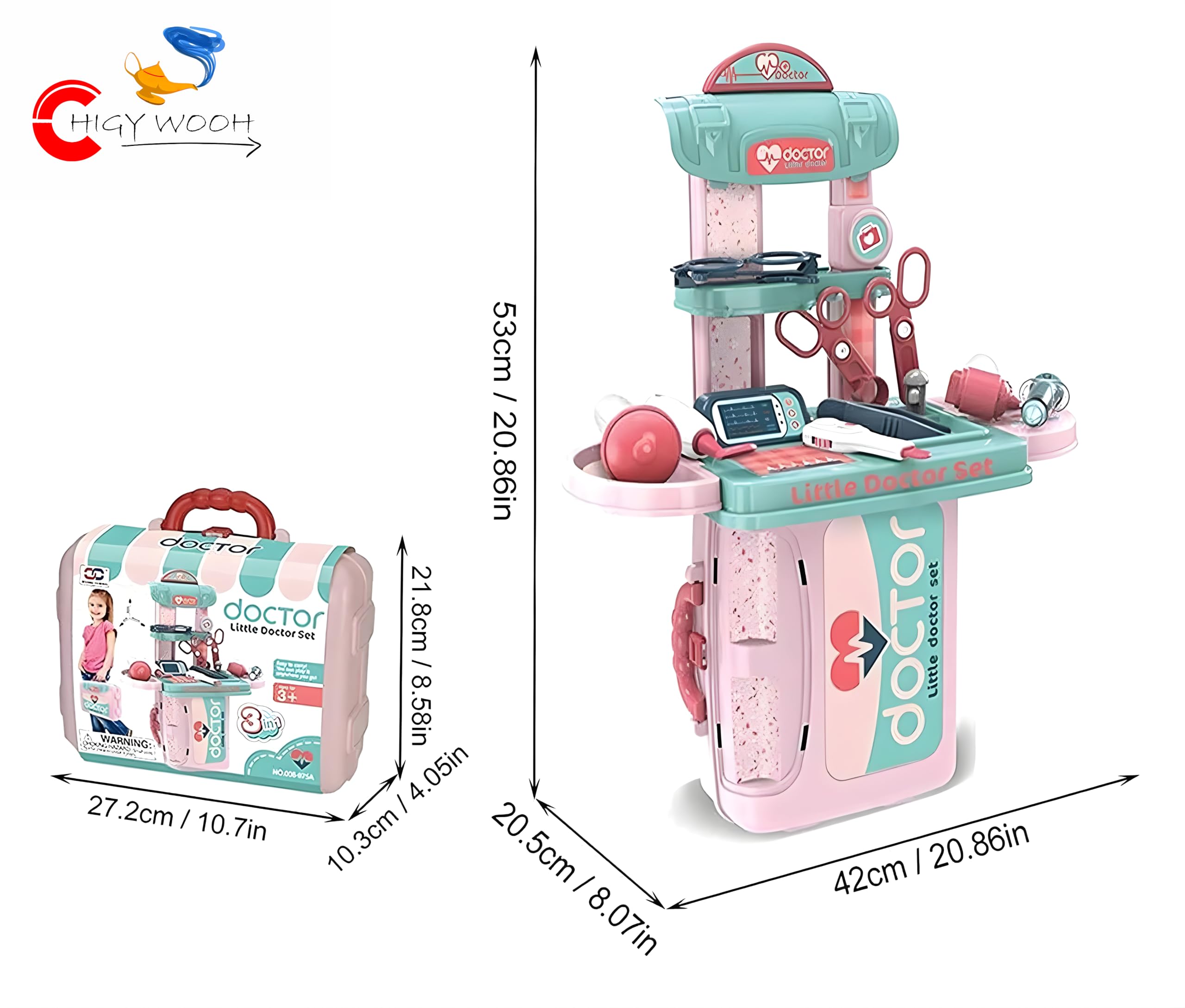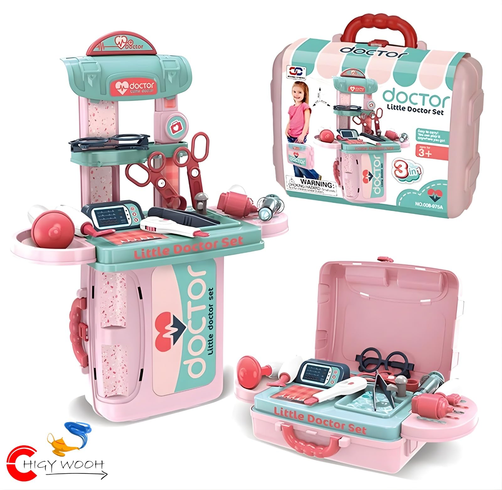Chigy Wooh Doctor Kit Toy for Kids | 3 in 1 Doctor Medical Backpack Pretend Play Set | Realistic Miniature Pretend Role Play Set | Gift for Boys & Girls