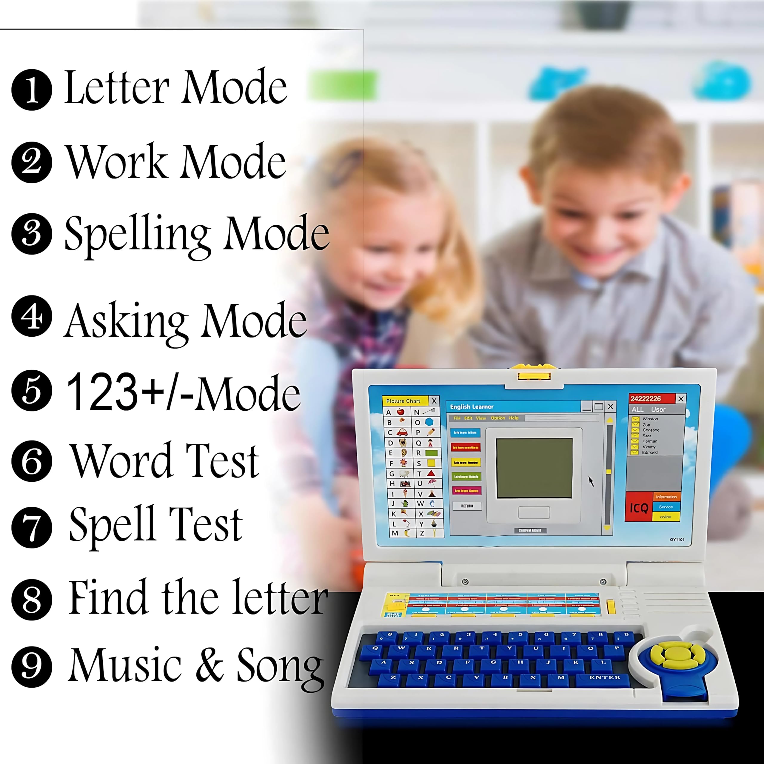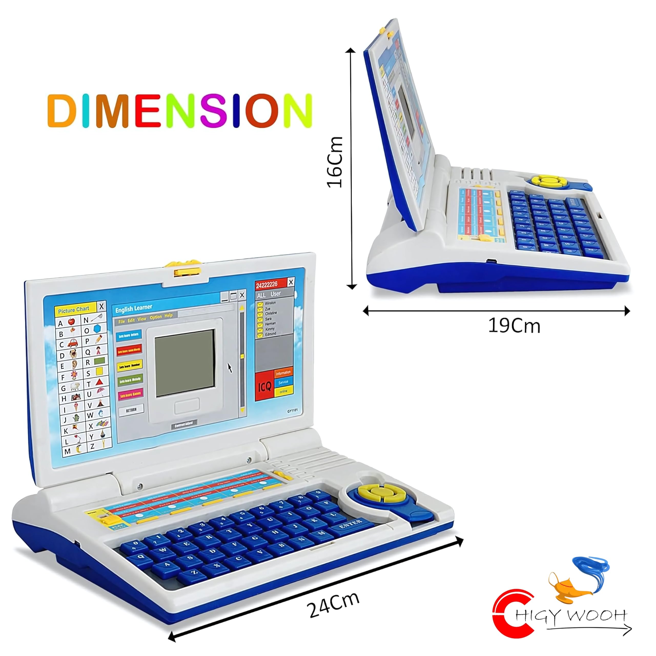 Cable World Educational Laptop Computer Toy with Mouse for Kids Above 3 Years - 20 Fun Activity Learning Machine, Now Learn Letter, Words, Games, Mathematics, Music, Logic, Memory Tool - Blue Toys & Games Stage 1 - learn alphabets: alphabets recognition and pronunciation. Write capital and small letters. Find the letter, it will speak out the letters- which the child needs to punch in on the key board Stage 2 - words: spelling and pronunciation. Spelling test. Identification of pictures. Find the word Stage 3 - learning musical notes: play melodies. Play musical notes. Recognize musical notes (visual and verbal) Stage 4 - learning numbers: pronunciation and spelling of numbers. Write the numbers. Numbers identification (Visual) Stage 5 - games: catch falling objects. Find the match pair. Star shooting. Draw a picture