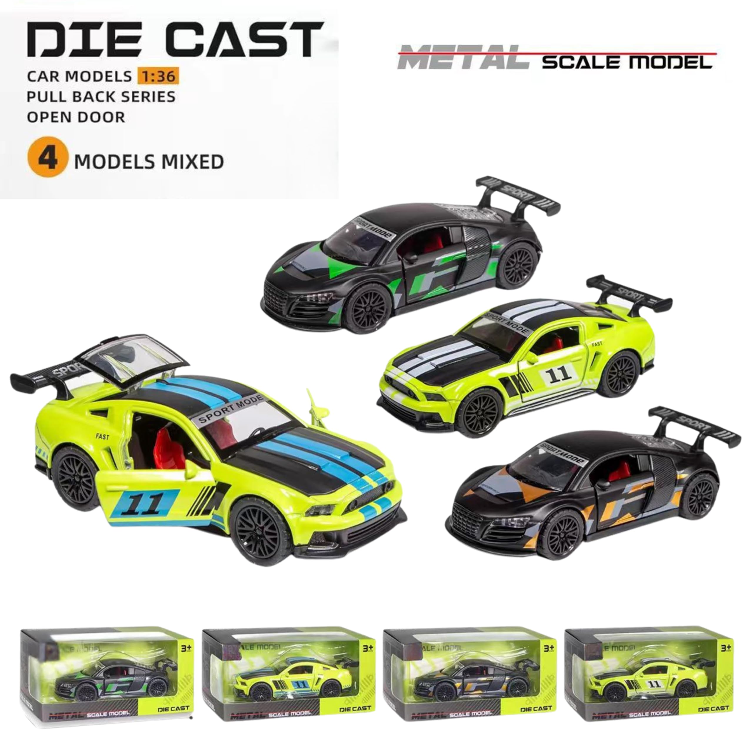 Chigy Wooh Mustang GT Sports Diecast Model Car with Pullback Action, Openable Doors & Trunk Metal Toy Car for Kids Best Gift for 3+ Year Old Boys & Girls