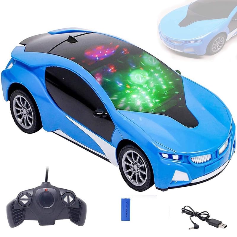 The package contains 1 Racing Car made of ABS material, 1 Remote Controller, 1 Lithium Ion Battery and 1 USB cable. The car can move Forward, Reverse, Left and Right. The RC Car includes 1 rechargeable lithium-ion battery which will lies at the bottom section of the car. Remote Controller requires two 1.5 V "AA" batteries which are not included and have to be purchased separately. [NOTE : Please fully charge the car before first use and use fresh batteries in the remote for better performance.] How to Charge RC Car Battery: 1) Attach the charging wire provided to your adapter and charge it from Laptop, power bank, or charger 2)Put the car on OFF mode and Charge it for 90 minutes and connect the battery inside the car after charging. 3) Turn the on/off switch at bottom to ON and your car is ready to play.