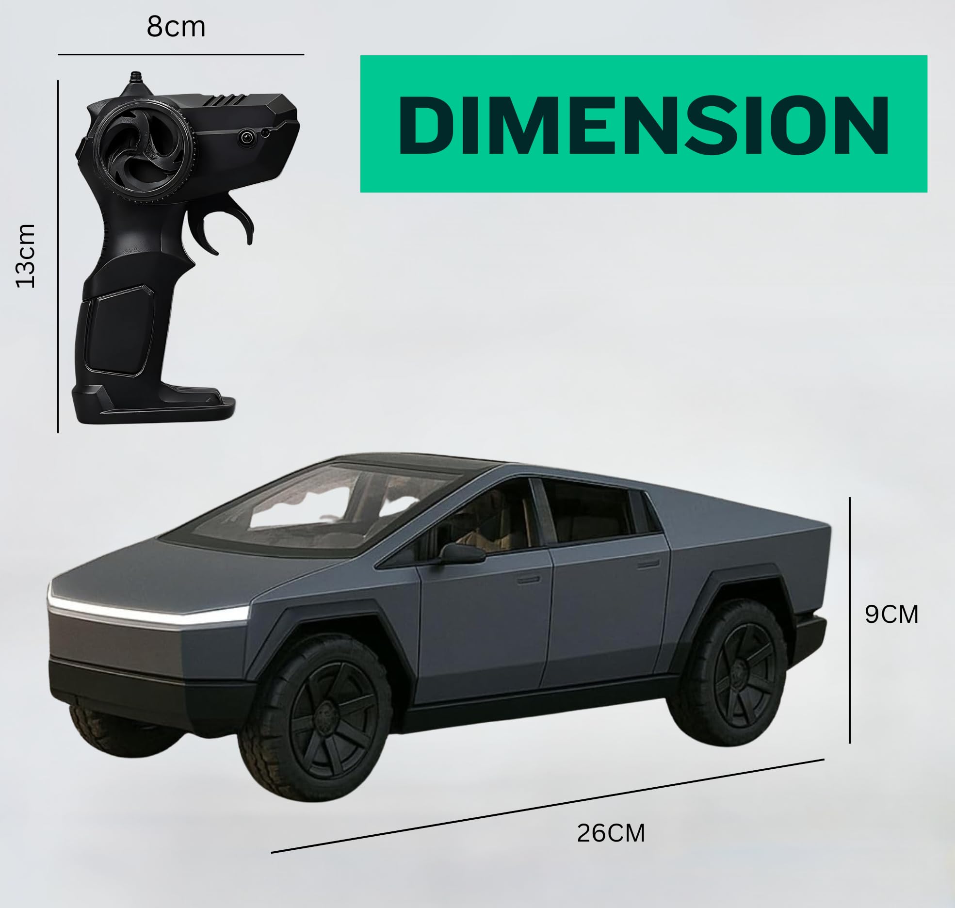 This is a cool remote-control (rc) tesla cyber truck with a unique, futuristic design. It's a 1:14...