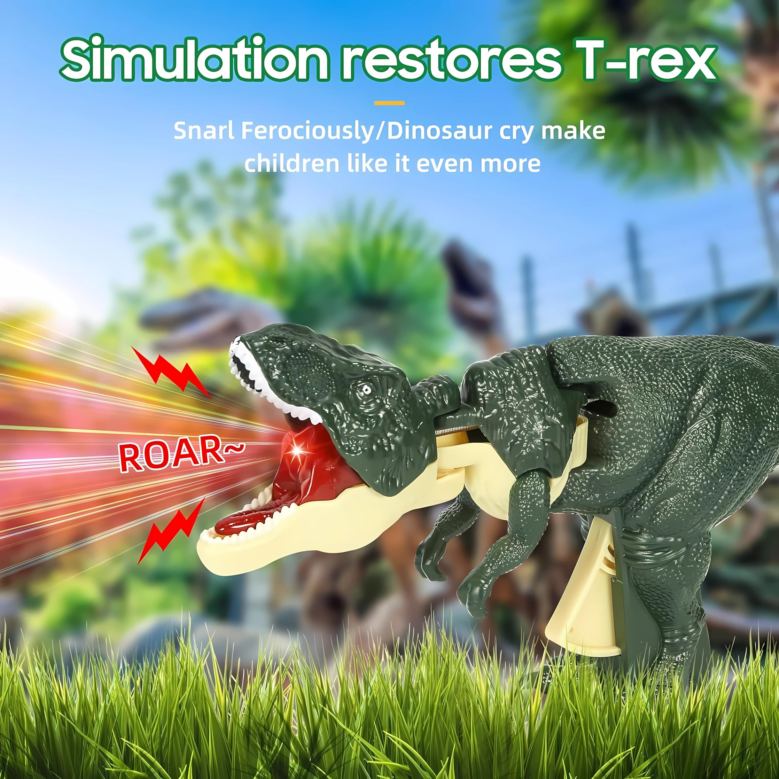 Dinosaur toy gun is in the shape of a cartoon dinosaur which will make the children curious about it. Realistic design dinosaur toy gun that can randomly spray light comes out of the mouth like fire which makes it look more cool. Your child will definitely love it. The tail of the Tyrannosaurus Rex model swings from side to side, like a button, adding even more dynamic movement to playtime. It enhances the overall sensory experience and makes the playing session more exciting and entertaining. Experience the thrill of action. Prehistoric era with this dinosaur toy for kids. Its realistic design and vibrant color capture attention, providing an immersive gaming experience and sparking curiosity about dinosaurs.