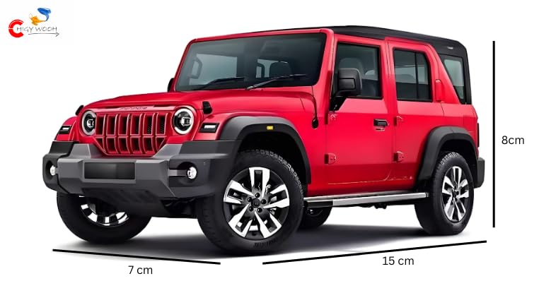 Thar roxx car 1:28 scale model car exclusive alloy metal pullback toy openable doors & light music the material used in this kids car is of top quality and is used to give it absolutely clear finish. Front and tail lights & sounds when doors are opened. Original cars look & 4x4 four wheel drive. 1:28 scale model carexclusive alloy metal pullback toy openable doors & light music