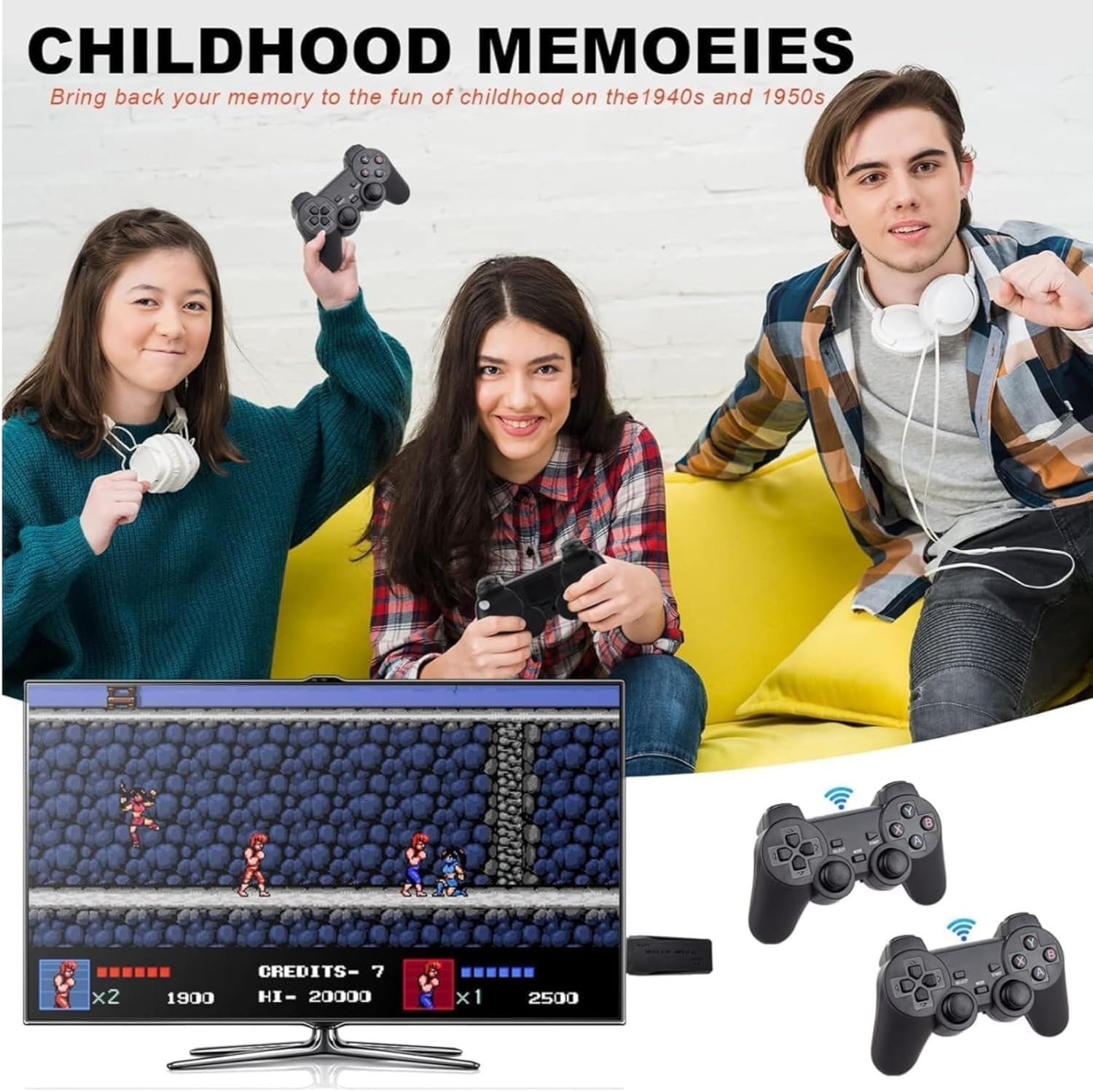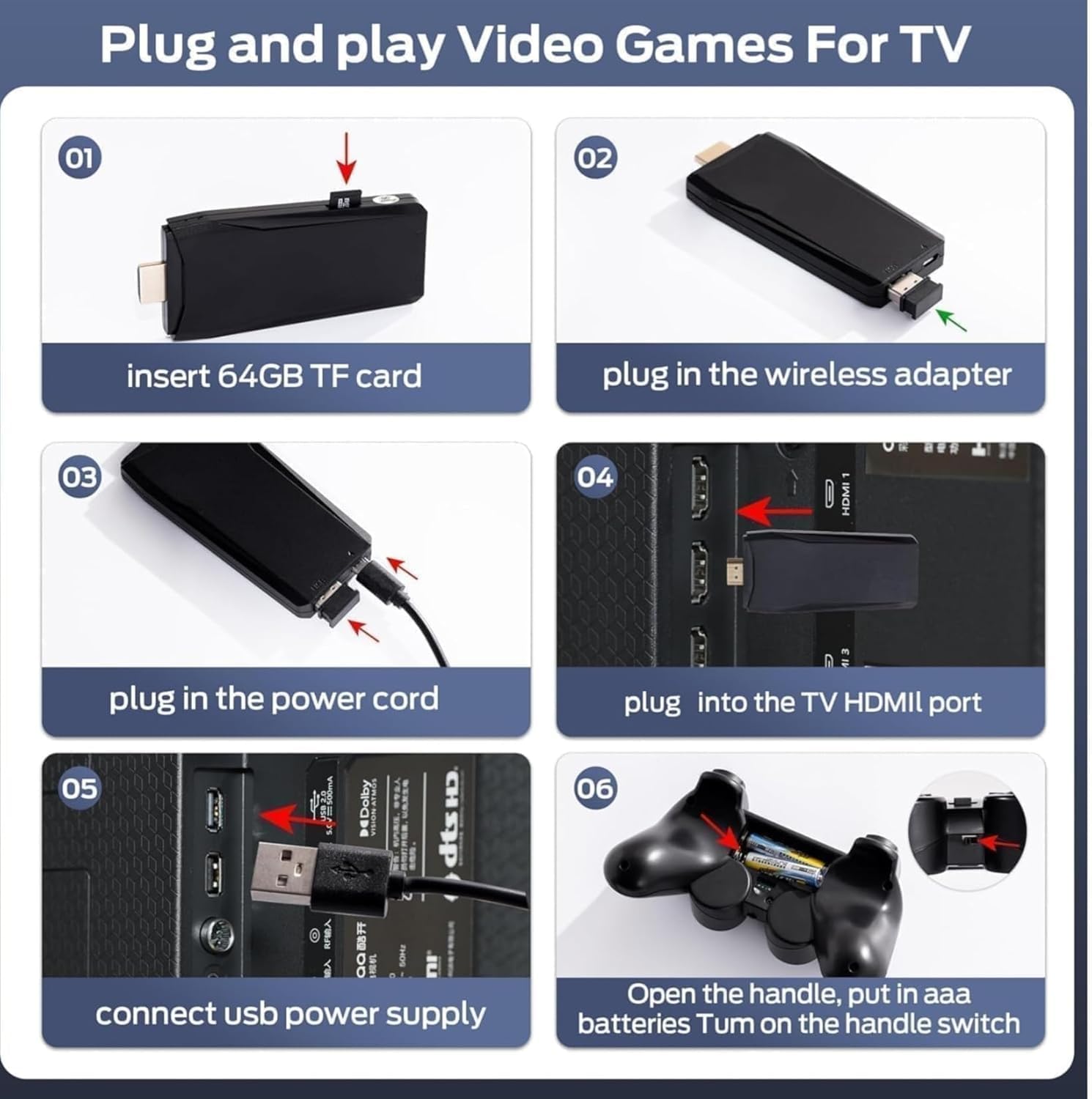 Enjoy a vast library of classic and modern games, preloaded on the device for endless entertainment. Experience smooth and crisp visuals with hdmi output that supports high-definition graphics and compatible with most hdmi-enabled devices, including tvs, monitors, and projectors. No need to automatically install any drivers. Just plug the game console into the tv's usb port and use the tv. Our video game controller works seamlessly with most modern TVs and monitors equipped with an HDMI port, can play wireless function and support USB charging within 10 meters.Enjoy over 10,000 preloaded games across
