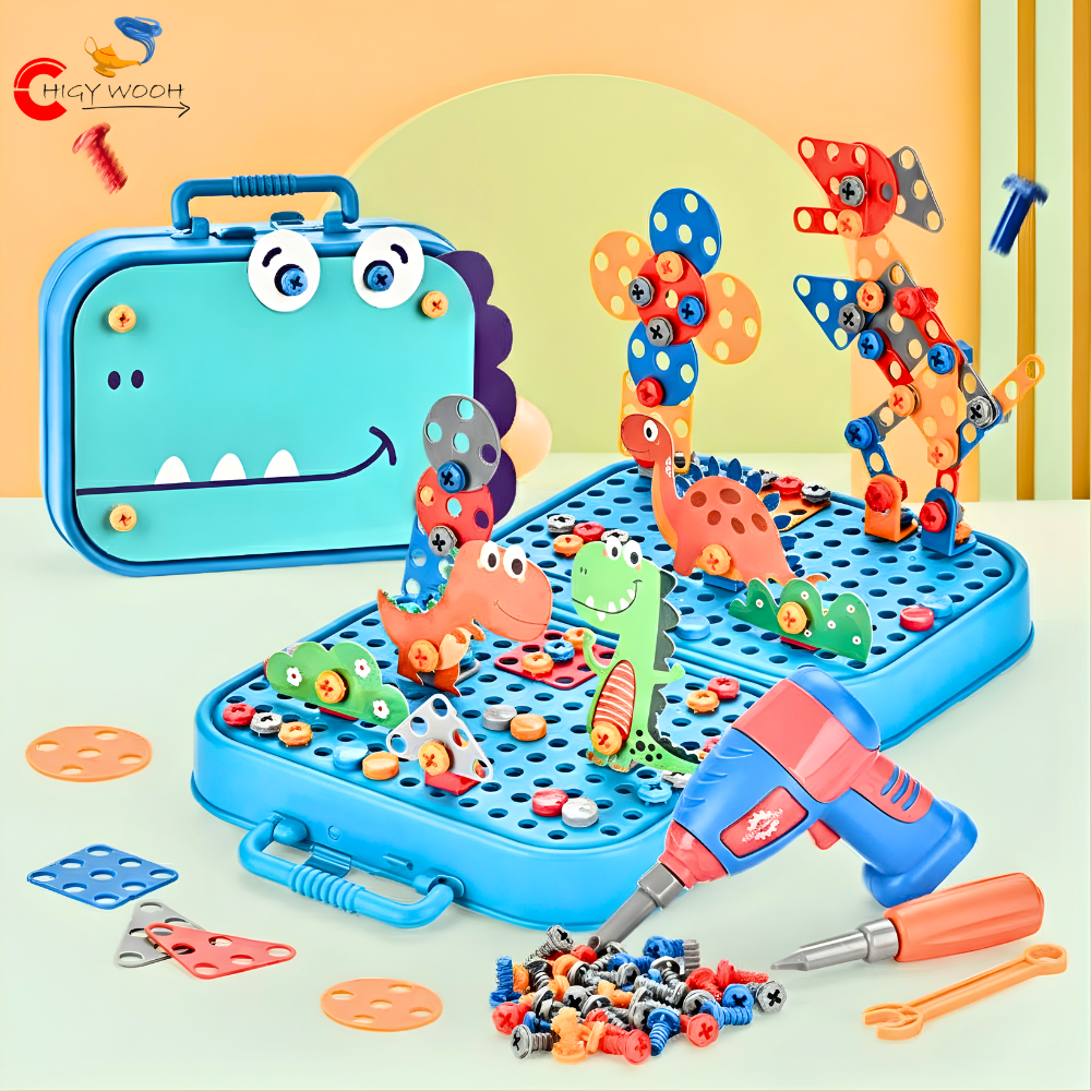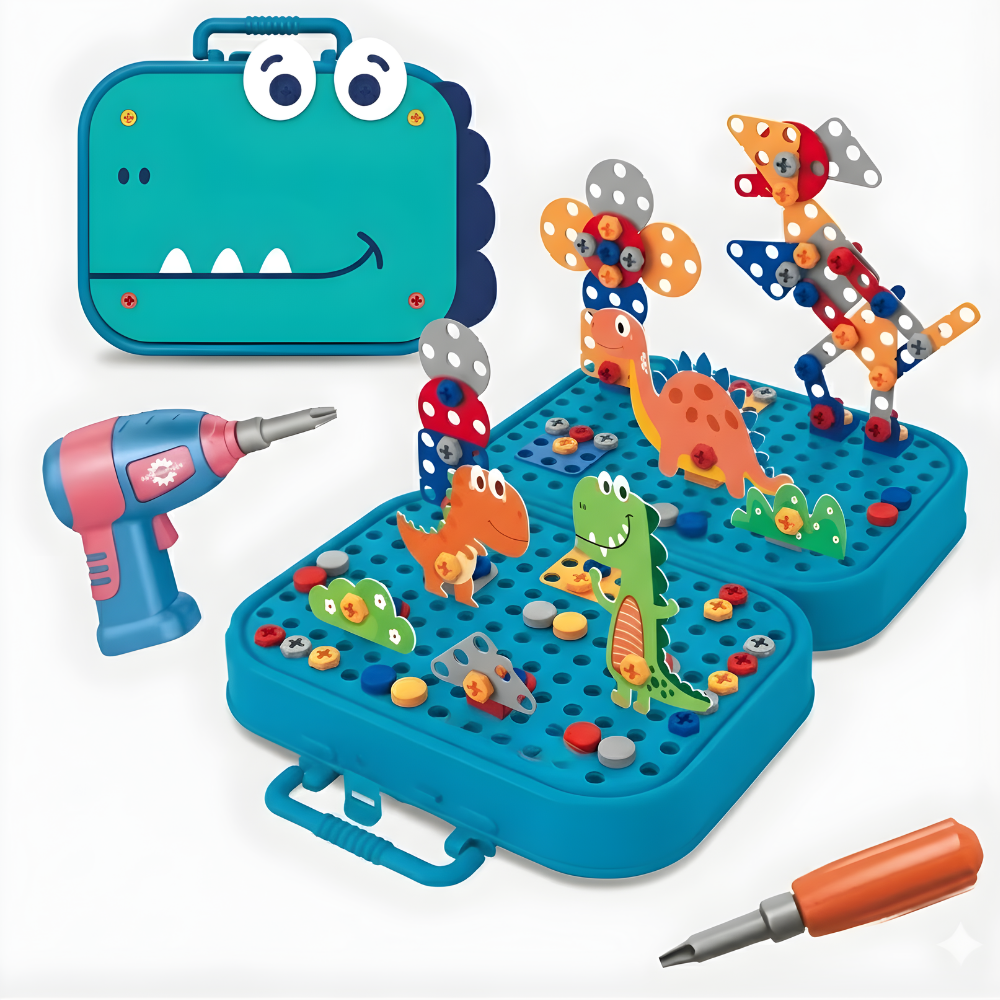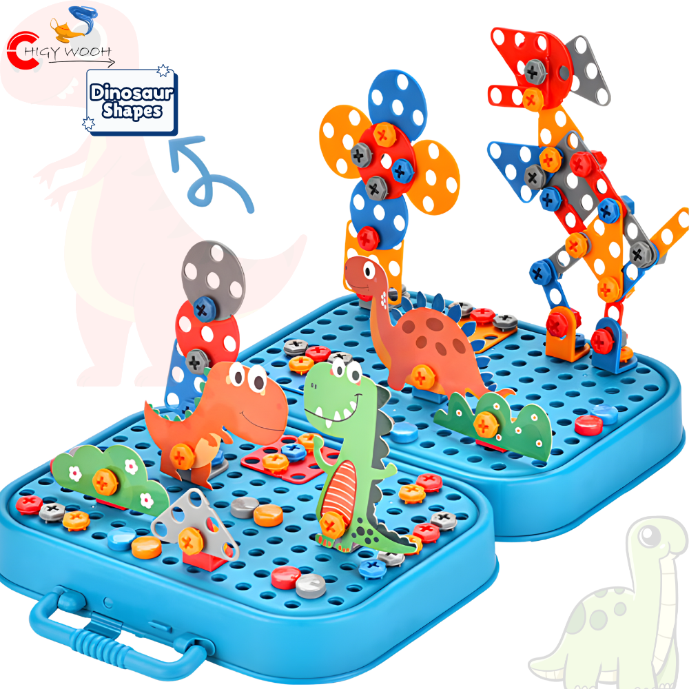 Endless Creativity: Use colorful screws, geometric shapes, and dinosaur figurines to build everything from a spinning flower to a towering T-Rex! 🦕🌼