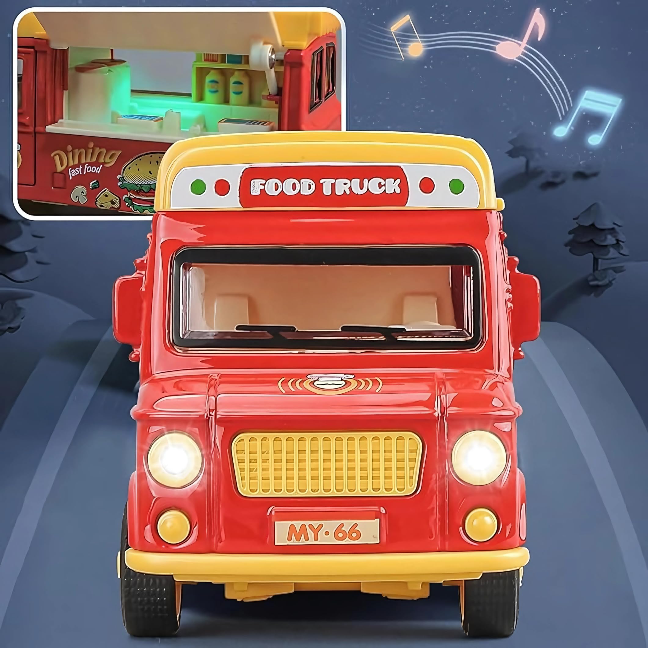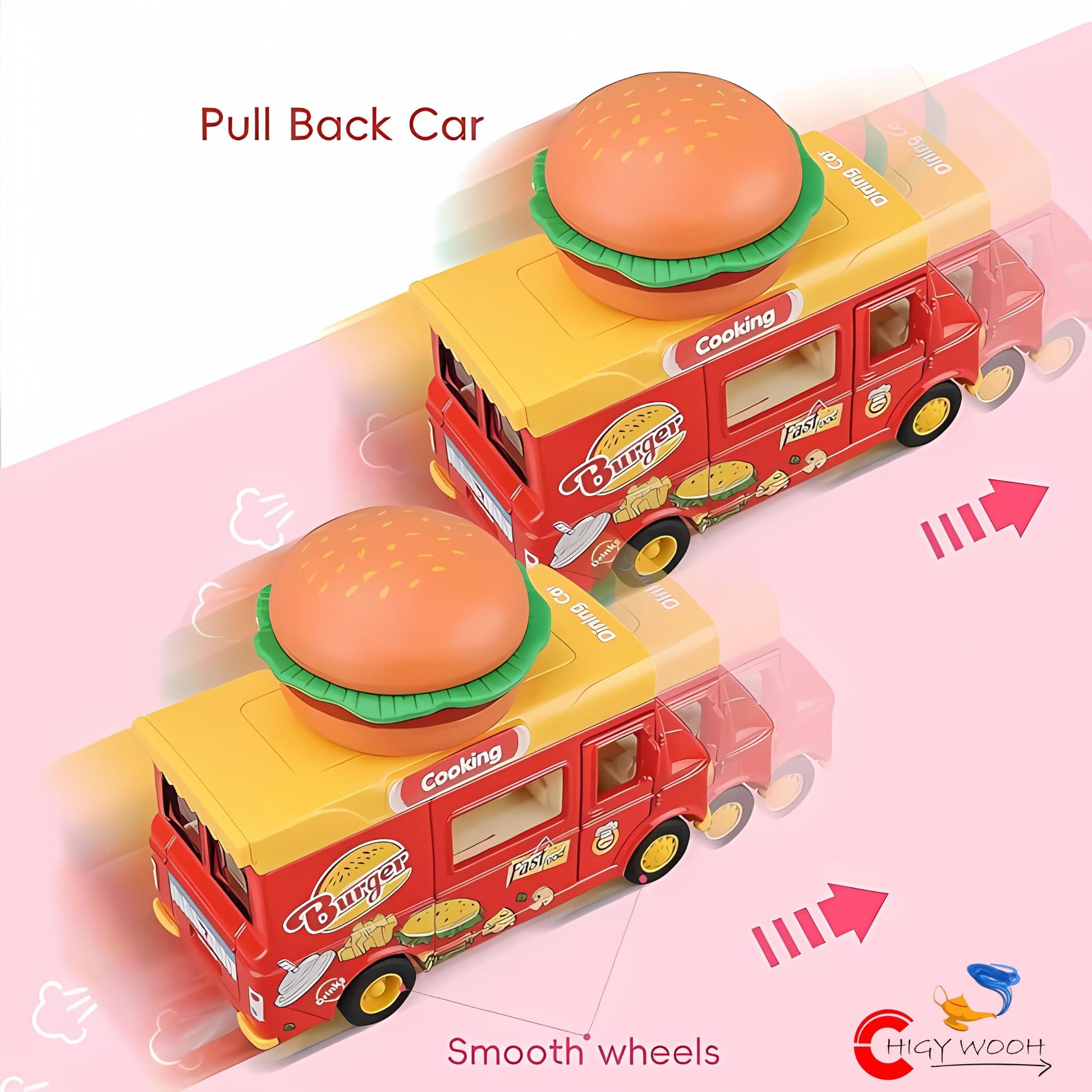 Little Fast Food Burger Truck with Magnetic Sound & Light Indication Feature Little Food Truck Pretend Play Toy for Toddlers 1:36 Scale Die Cast