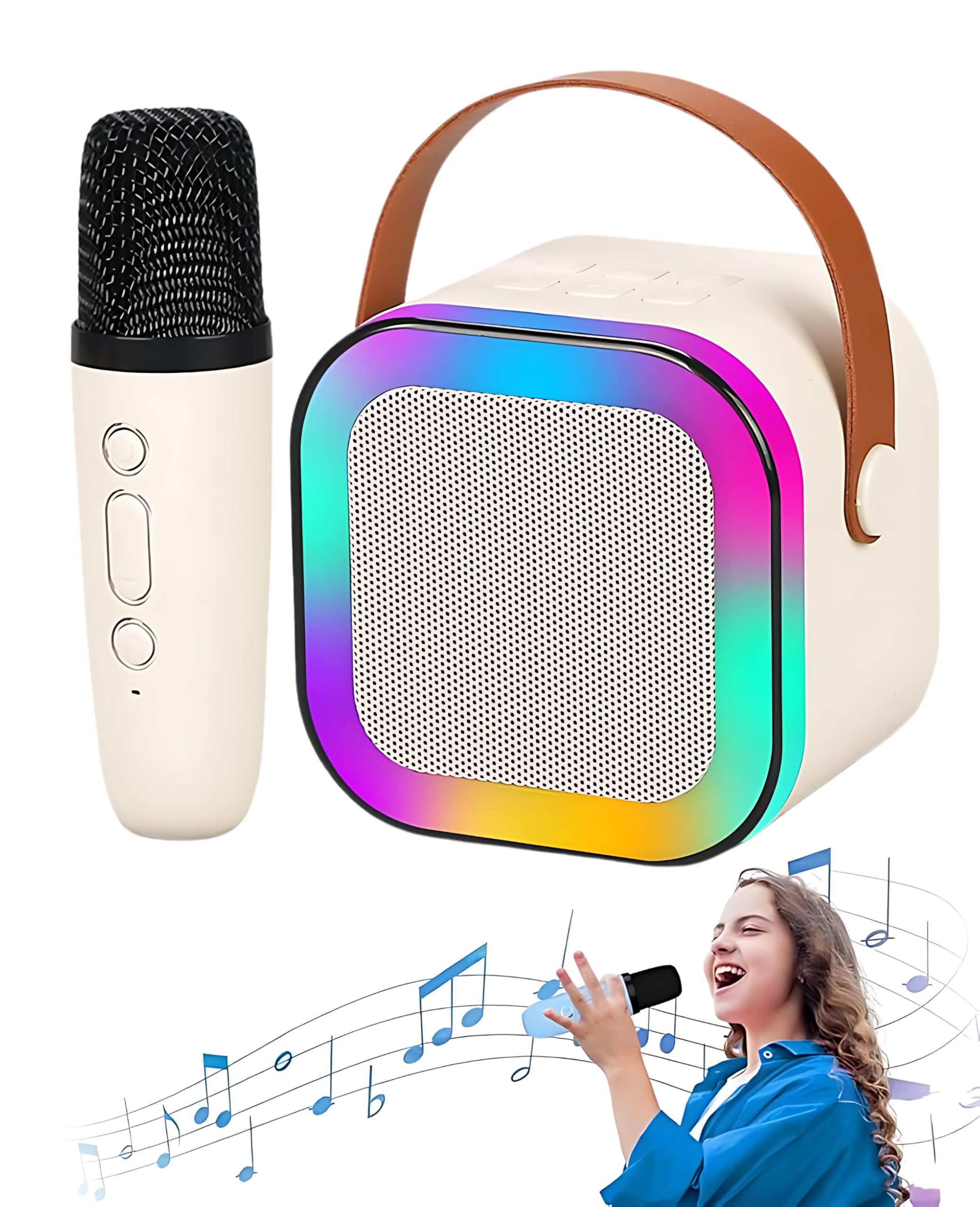 Rechargeable Karaoke Mic with Speaker for Singing Wireless Mini Portable Bluetooth Speaker with Microphone & LED Lights Cute Birthday Gift for Kids Musical Toys for Boys, Girls and Adults