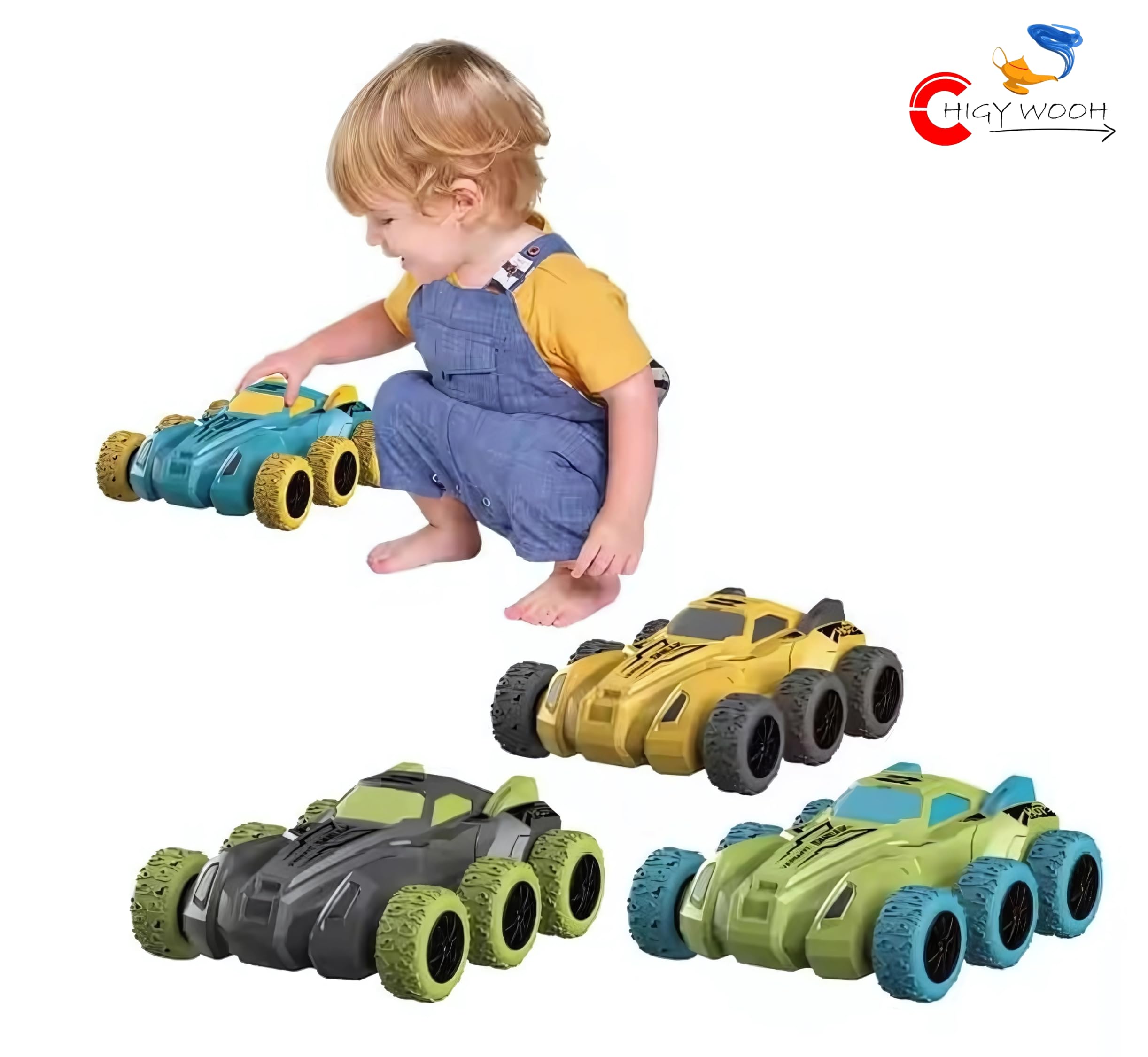 Get ready for non-stop action with the Inertia-Powered Stunt Car! Designed for thrilling tricks and high-energy play, this friction-powered stunt car moves forward with just a push—no batteries required! Watch as it performs incredible forward somersaults, flips, and high-speed racing on various terrains. Built with a durable, impact-resistant body and six rugged wheels, this toy car ensures long-lasting performance and stability. Perfect for indoor and outdoor adventures, it can tackle carpets, tiles, grass, and pavement with ease. Available in multiple vibrant colours, this inertia stunt car makes an exciting gift for kids who love racing and stunts. Lightweight, compact, and easy to carry, it's the perfect travel companion for hours of endless fun!
