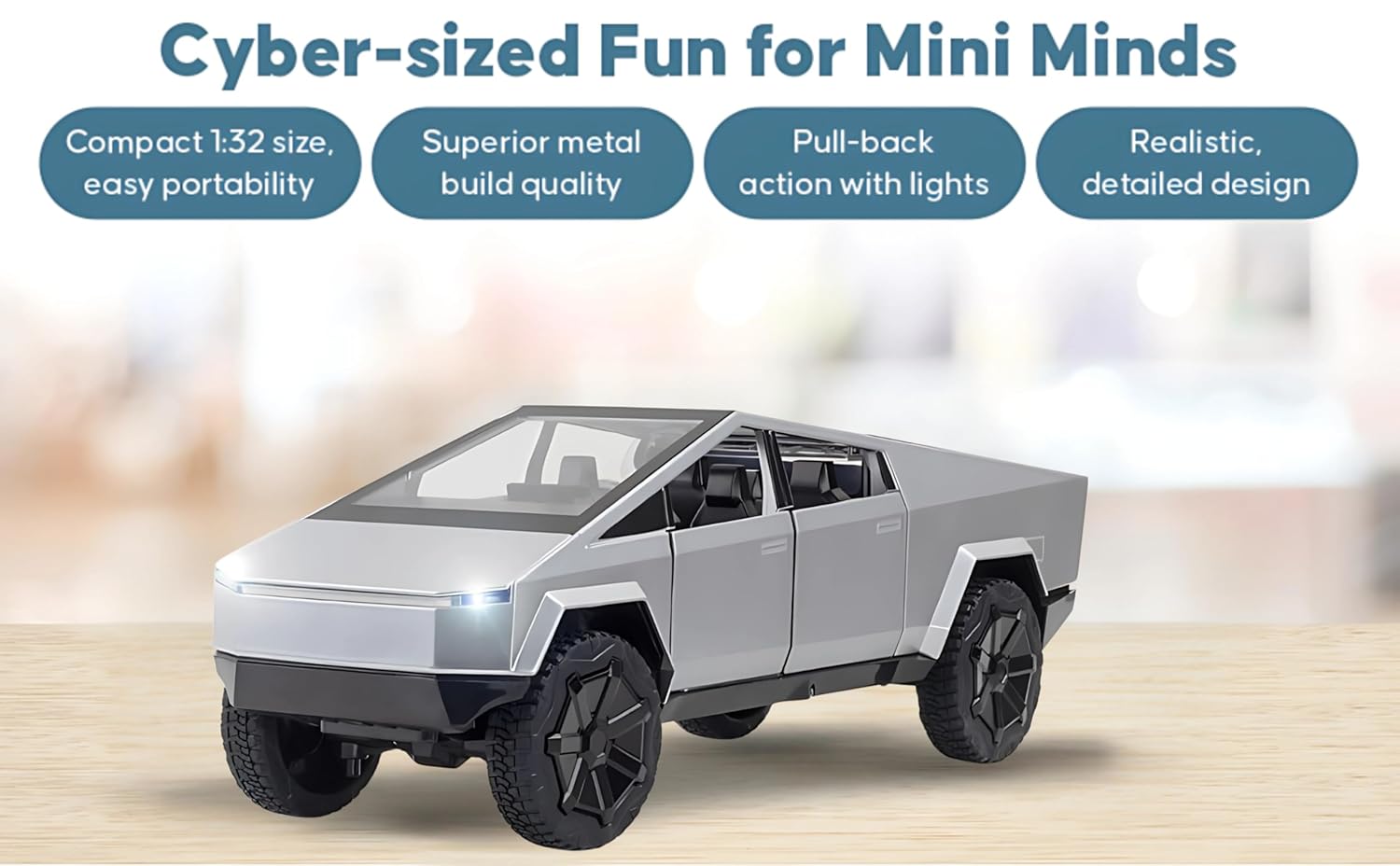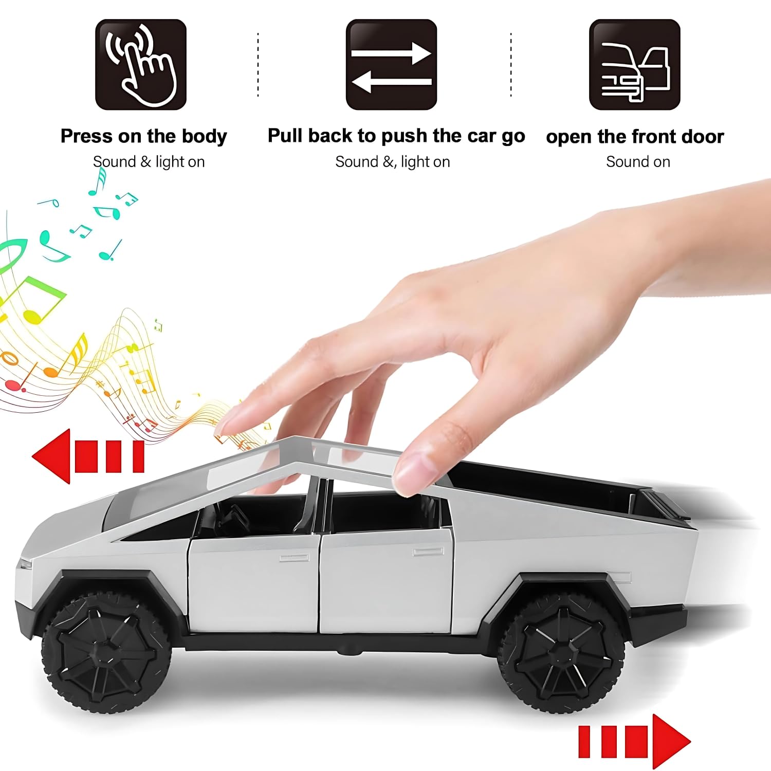 Pull-back mechanism with sound effects and working lights, plus realistic door opening functionality for enhanced play value the sound of model will sound like an engine sound, there is no doubt that the cool car model will attract children's attention. Perfect gifts for kids original Cars Look & 4x4 four Wheel Drive. Doors can be opened. And Front and Tail lights & Sounds when doors are opened.